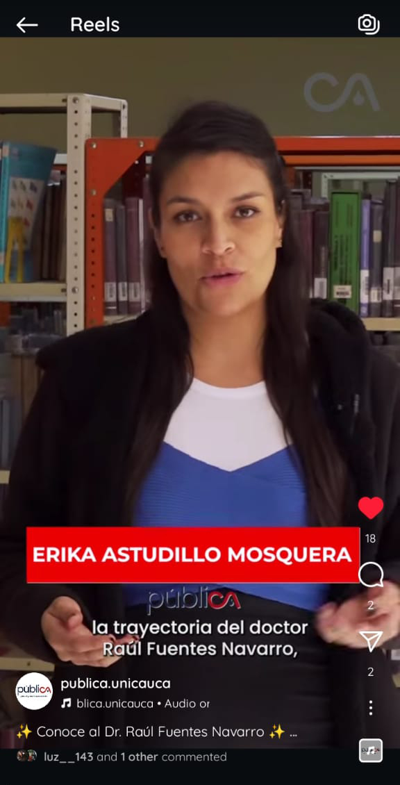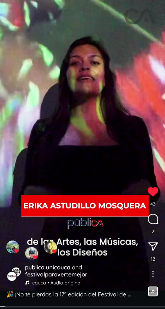«Participó como asesora de comunicación y diseño web, publicación y diseño de imagen corporativa, logotipo, publicación de bocetos y maquetación, administradora del sitio web en el servidor, dominio y hosting, la configuración de correos y chat online en especial en el Proyecto de Investigación Musical: «El CAUCA LE CANTA A POPAYÁN».